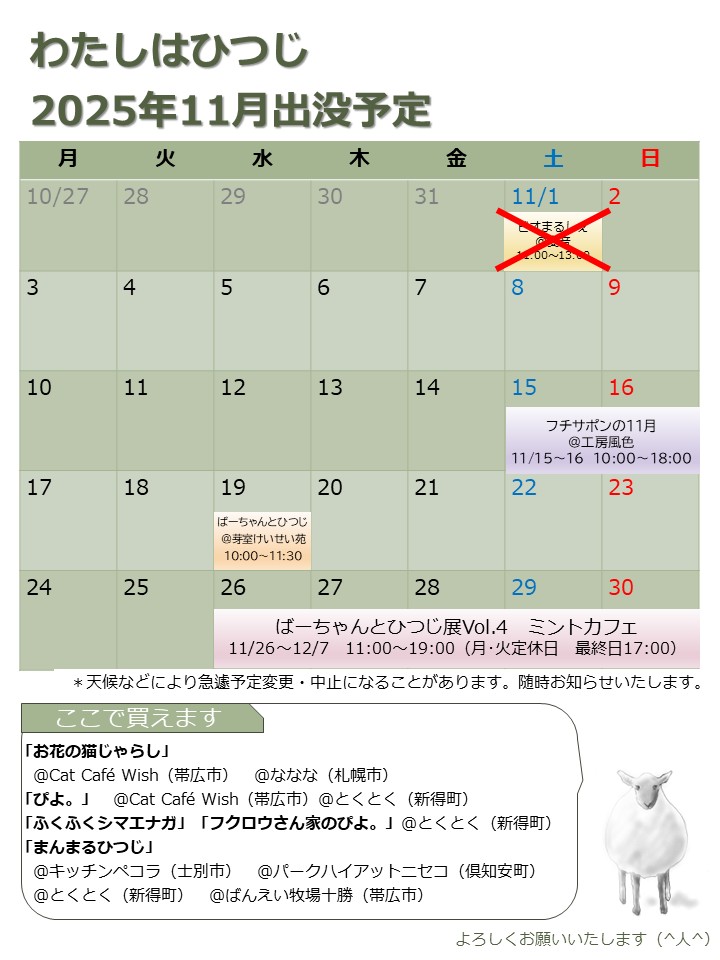 さてはて、2025年11月のわたしはひつじ出没予定です。